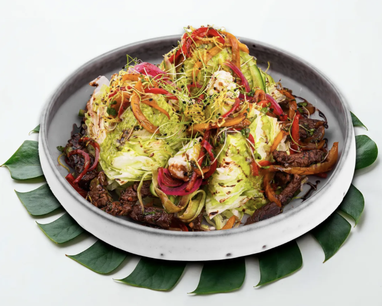بیف سوپا، کاهو پیچ، کاهو فرانسوی، تربچه، پنیر زعتر، پیکل پیاز، سس سبز، گلیز بالزامیک