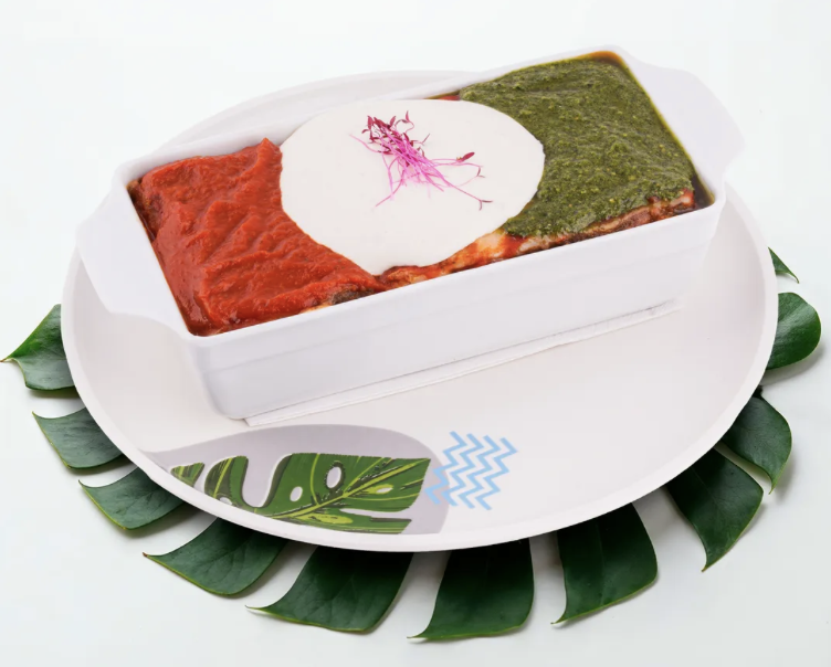 خمیر دستساز، سس بلونز، پنیر موزارلا، بشامل، سس گوجه، سس پستو، فوم پارمسان