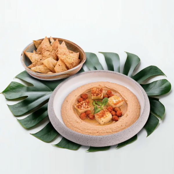 نخود ارده سیر، روغن زیتون، پنیر هالومی، روغن پاپریکا