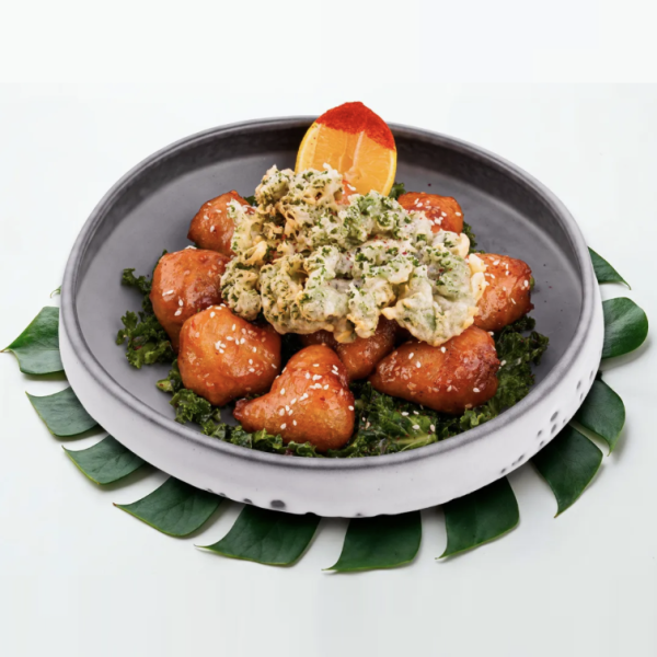 سینه مرغ تمپورا سس ترش و شیرین و سبزیجات سرخ شده