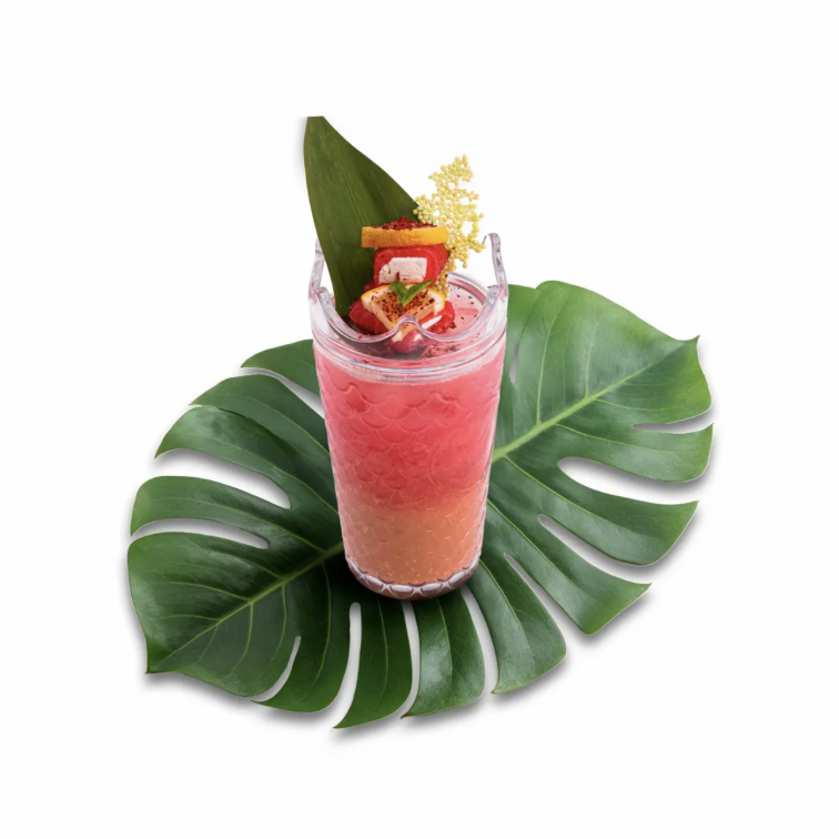 تداعی کننده طعم چیزکیک توت‌فرنگیو آلبالو به همراه فوم سبک